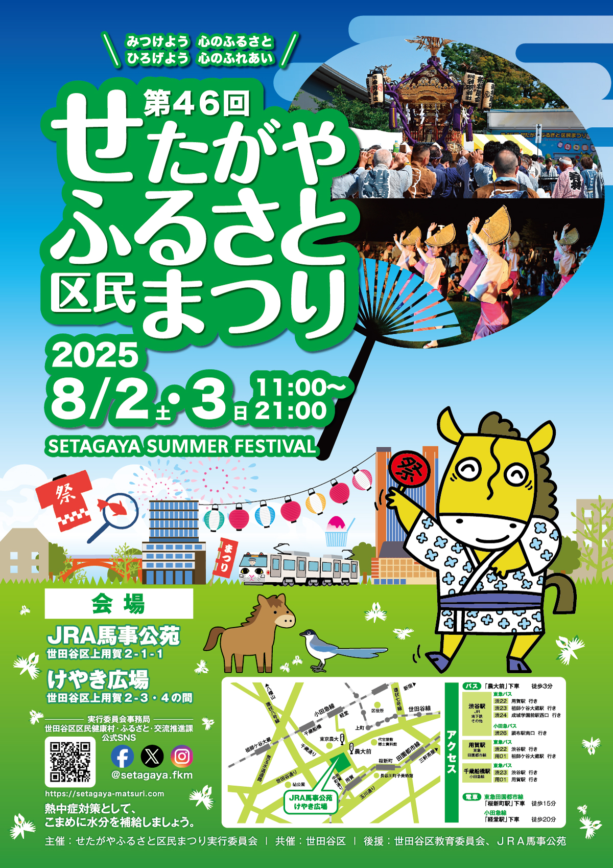 2026年(令和8年)の第47回せたがやふるさと区民まつりは、JRA馬事公苑が第20回アジア競技大会の馬術競技会場として使用されるため、下記日程に変更し開催いたします。