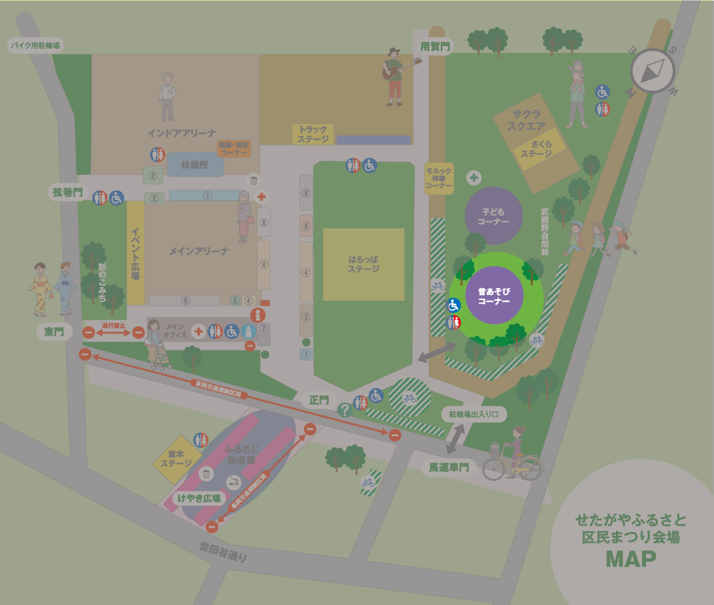 お手玉、フェイスペイント、バルーンアート、草笛、紙トンボ、ベーゴマ、世田谷の昔話の紙芝居など、いろいろあるよ!