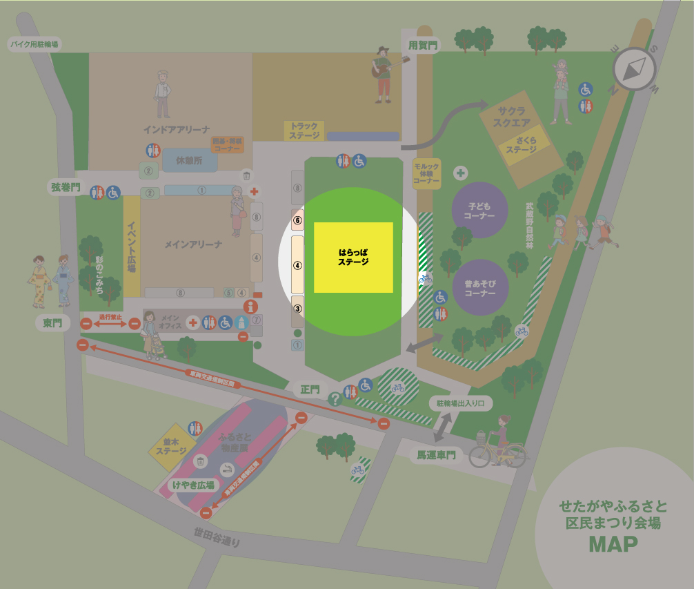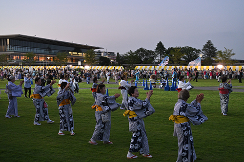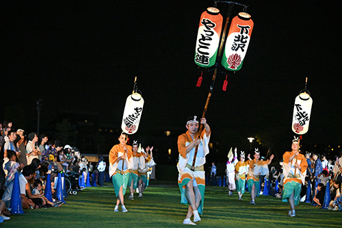 盆踊り、よさこい、阿波踊り、サンバの披露があるよ。
