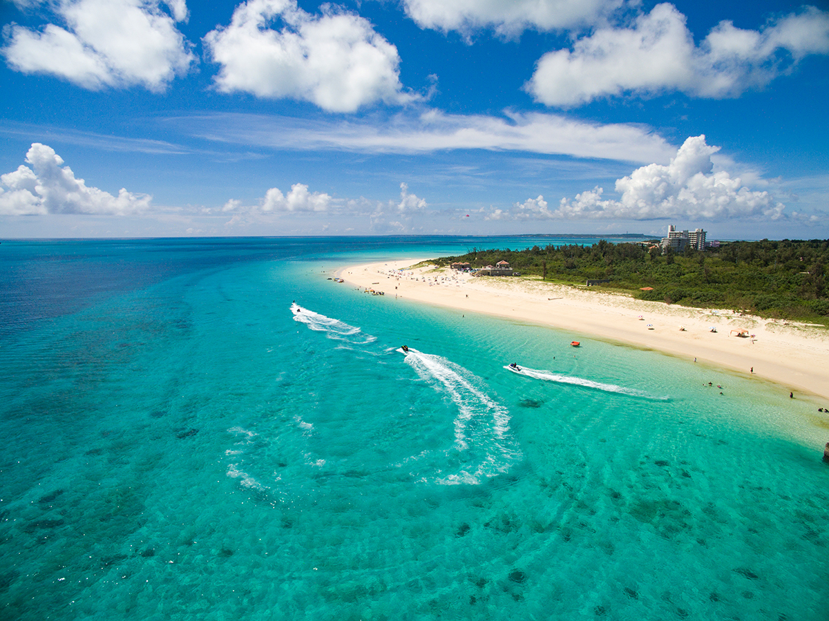 沖縄本島から南西約290kmに位置する宮古島諸島は、那覇空港から飛行機で45分の距離にあり、宮古島、池間島、来間島、伊良部島、下地島、大神島、多良間島、水納島の大小8つの有人島から構成されています。池間島、来間島、伊良部島は宮古島と橋によって陸路でつながっており、2015年に開通した伊良部大橋(全長3,540m=サンゴノシマ)は無料で通行できる日本最長の橋として知られ、美しい宮古ブルーの海を見ることのできる人気の絶景ポイントです。さらに、サンゴ礁に囲まれた島々の海はダイビングやシュノーケリングに最適で、多彩な海洋生物に出会えるのも魅力の一つです。